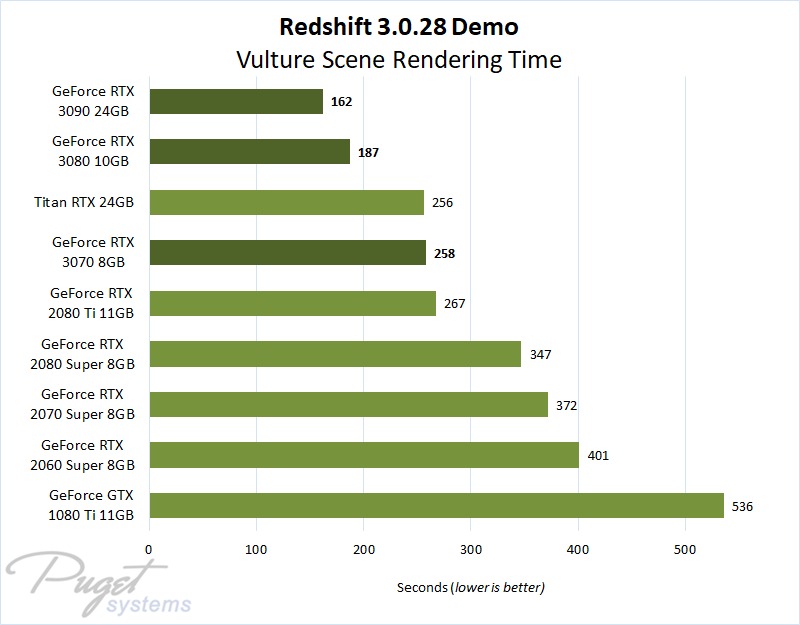 Read the full article: Redshift 3.0 – NVIDIA GeForce RTX 3070, 3080 & 3090 Performance