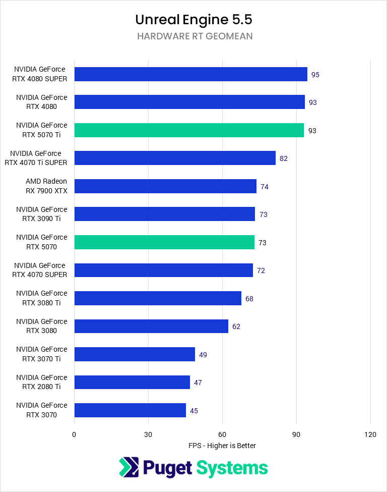 In rendering applications, the 5070 is a mixed bag. It is often only on par with the previous generation RTX 4070 SUPER, although it is 60% to 2x faster than an older RTX 3070. However, there is still the lingering issue of compatibility and performance quirks, so we would recommend buying with caution or holding off for a bit before committing to a 5070 for a rendering system. We are currently maintaining a list of known issues in content creation applications that you can check in on to see when these are resolved.