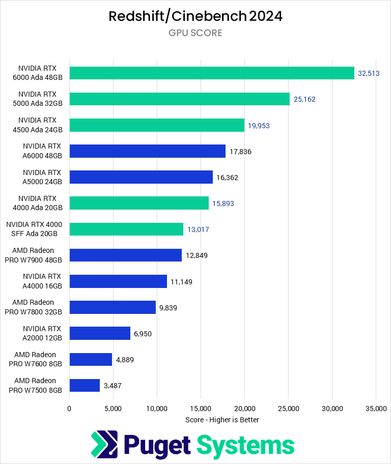 Tags: AMD, Blender, Cinema 4D, DaVinci Resolve, NVIDIA, Octane, OctaneBench, Premiere Pro, Radeon PRO W7500, Radeon PRO W7600, Radeon Pro W7800, Radeon Pro W7900, Redshift, RTX 4000 Ada, RTX 4000 SFF Ada, RTX 4500 Ada, RTX 5000 Ada, RTX 6000 Ada, RTX A2000, RTX A4000, RTX A5000, RTX A6000, Unreal Engine, V-Ray