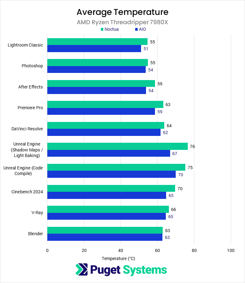 Bar chart of average temperature between an AIO and Noctua air cooler.