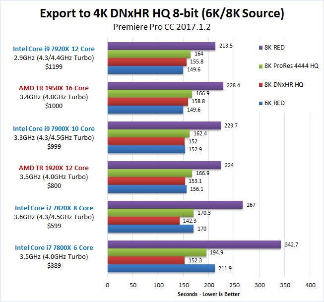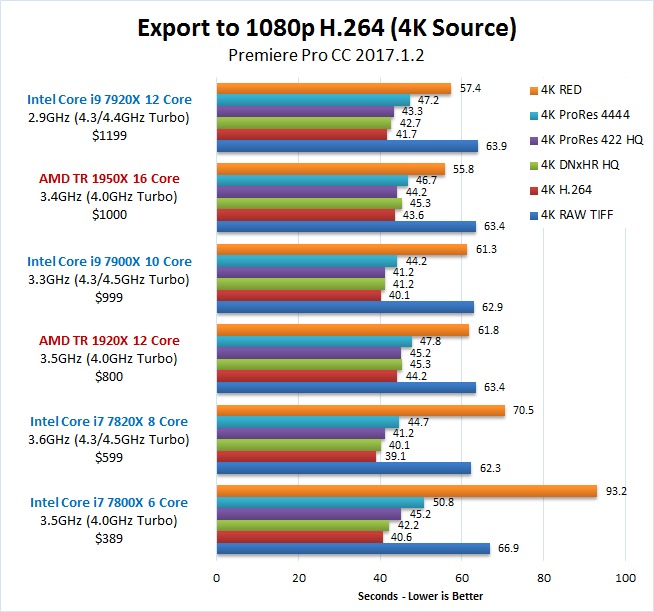 Premiere Pro Skylake-X vs Threadripper Overall Benchmark Results