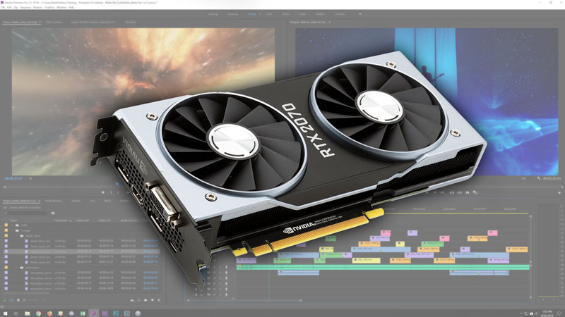 Like most of Adobe's popular applications, Premiere Pro CC utilizes the GPU to enhance performance for a number of tasks but it is often more important to get the right CPU than it is to get a faster GPU. NVIDIA's new RTX series cards have general performance increases like you would expect, but much of what makes these cards interesting are the addition of two new features: Tensor cores and RT cores.
