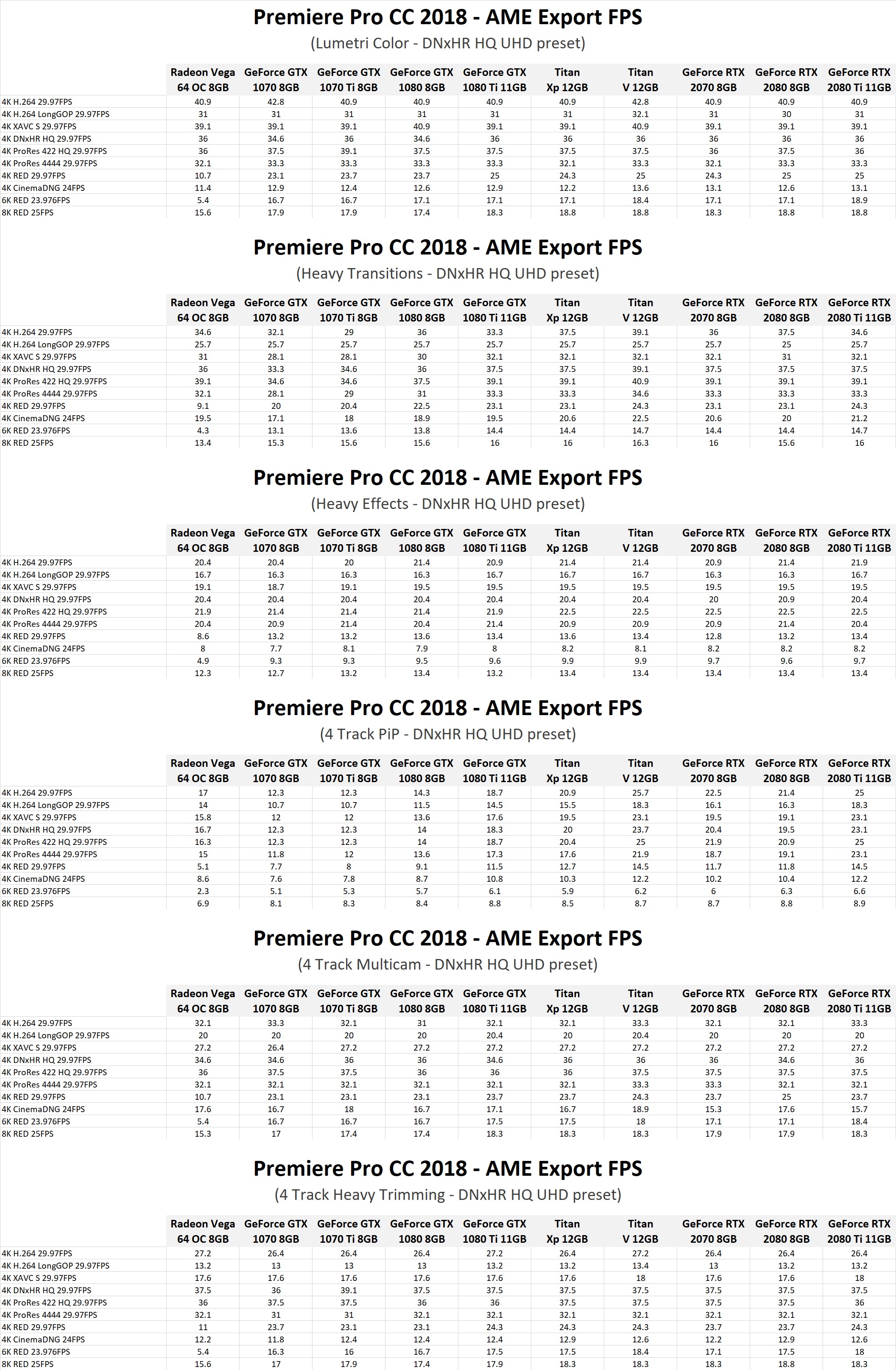 We are really talking about a ~5-10% difference in performance between the RTX 2080 Ti and the GTX 1070, however, so you likely won't notice a massive difference between any of the NVIDIA cards we tested unless you are doing exports that take several hours to complete.