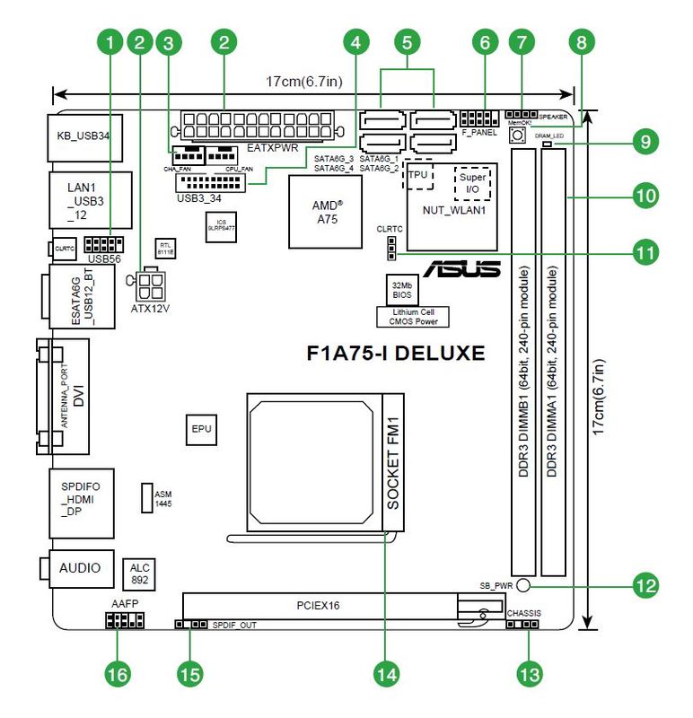 This motherboard, like most mini-ITX motherboards, is very compact. Due to the limited space, we sometimes see headers get moved to really inconvenient locations. On the F1A75-I Deluxe, there are a few oddities, but nothing major.