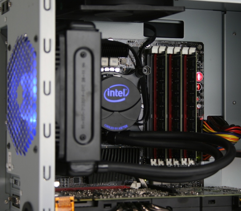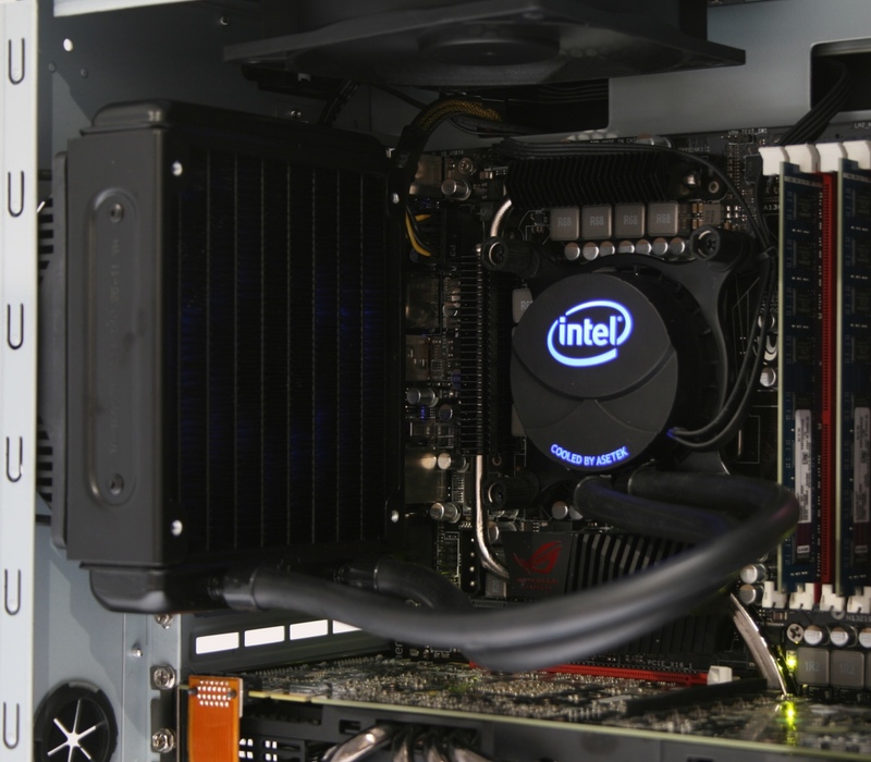 In addition to a standard heatsink (DRA-A) intended for use with low to mid-range socket 2011 CPU's, Intel has partnered with Asetek to develop a closed-loop liquid cooling solution which they are calling the DRX-B (retail name RTS2011LC). Over the past few years, this type of cooling has become increasingly popular as it performs very well and is decently quiet. In fact, Puget Systems has been using this type of cooling ever since 2007 with the Puget Hydro CL3 as it's latest incarnation.