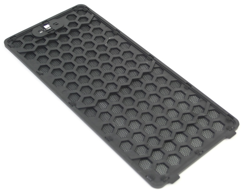 Starting with the front of this chassis, the front bezel consists of three layers of materials which have been sandwiched together: the bottom honeycomb plastic layer with tabs that secures the bezel to the chassis, a layer of fine mesh to help keep dust out of the chassis, and a top layer of metal mesh for cosmetic appearance. On the chassis frame behind the bezel are the mounts for the various different sizes of fans that can be installed onto the front of this chassis. By default, this chassis comes with a single 120mm fan installed into the bottom 120mm fan mount.