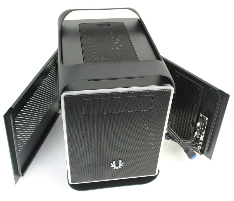 The plastic handles are secured to the chassis using four screws and eight tabs, and should be strong enough to be used to transport the chassis with an average system installed. If you are installing more than a couple platter hard drives or using a full custom liquid cooling setup, however, we would not recommend fully trusting these handles.