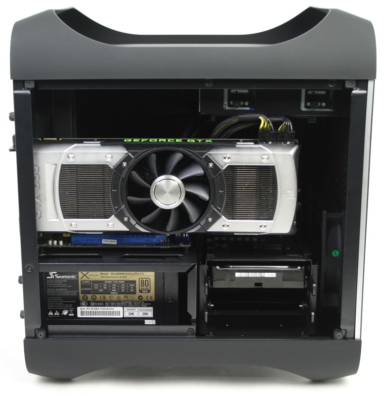 The BitFenix Prodigy has received quite a bit of attention on the web recently, but the PC community is divided over whether or not it is actually good chassis. On the one hand, the Prodigy is much larger than any other mini-ITX chassis we have ever seen, but at the same time this larger size gives it an almost unprecedented amount of cooling and internal drive customization. Unlike most mini-ITX chassis, its design allows for the use of closed-loop liquid coolers (like the Puget Hydro CL3) or even full custom liquid cooling loops. With a few minor tweaks, almost any reference design video card can be installed along with a full sized ATX power supply.