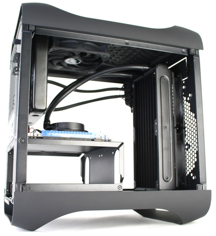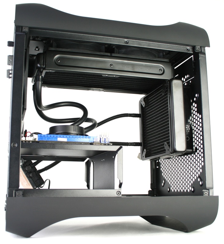 In our eyes, the main attraction of this chassis is how well it works with liquid cooling. To be fair, you do lose quite a bit by installing a full liquid cooling setup – namely the 3.5" and 5.25" drive mounting – but for those who want extreme cooling in a small(ish) form factor, this chassis is an excellent choice. Whether using a closed-loop liquid cooling system or building one from scratch, the cooling potential and flexibility of this chassis is much better than any other mini-ITX chassis currently on the market.