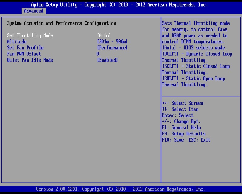 The BIOS has a few options for controlling the fan headers, but they are altitude-based and do very little in the way of actually throttling the CPU fans. On this motherboard, you should not expect the fans to ramp to more than 10-15% of their maximum RPMs. As is true on most server motherboards, this board is designed to keep the CPUs running as cool as possible with only a small consideration for noise levels.