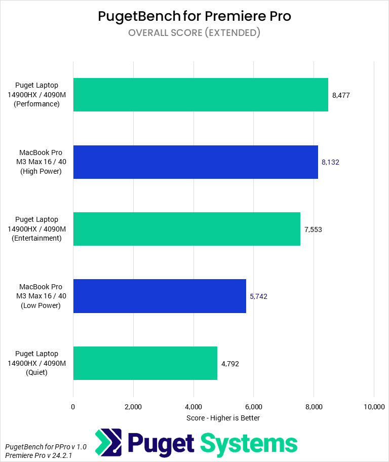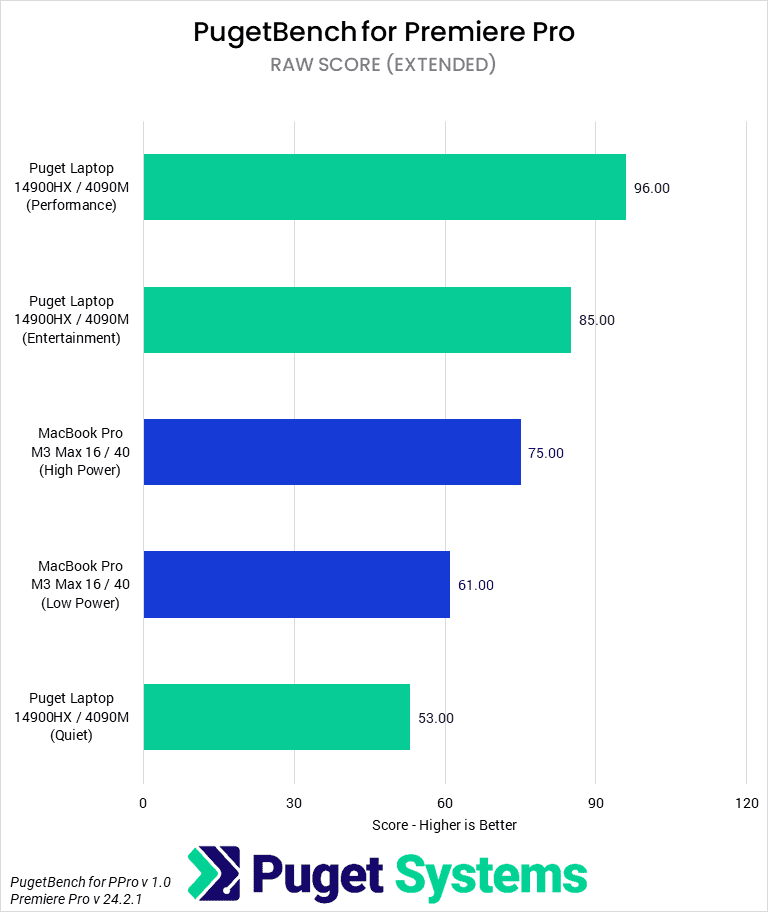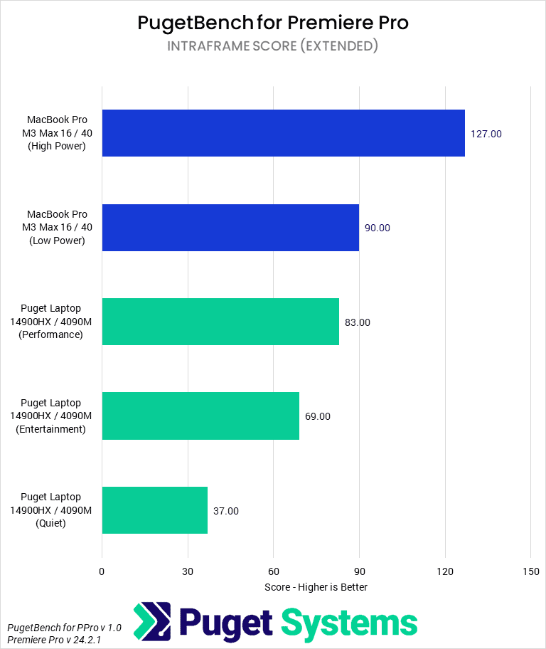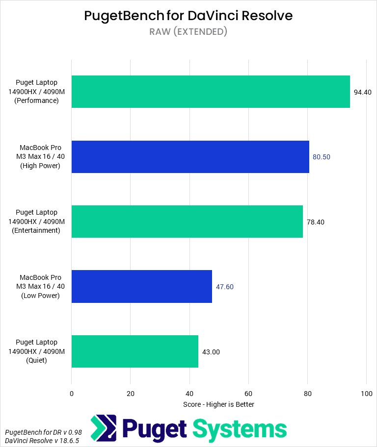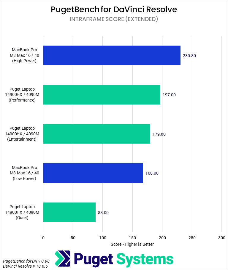 Choosing between a MacBook Pro and our PC laptop will likely hinge on many factors beyond raw performance, including application support, ecosystem compatibility, battery life, weight, upgradability, repairability, and simple personal preference. However, performance is often one of the key considerations, especially in intensive workflows like video editing, VFX, and rendering.