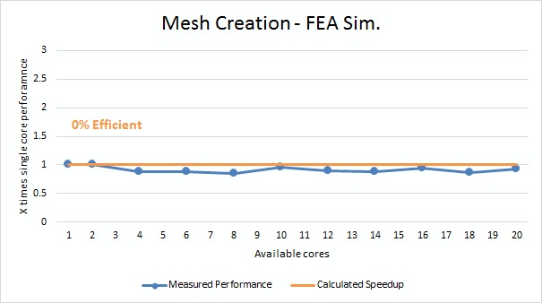 Starting with the mesh creation for our FEA simulation model, we saw absolutely no increase in performance with multiple CPU cores.