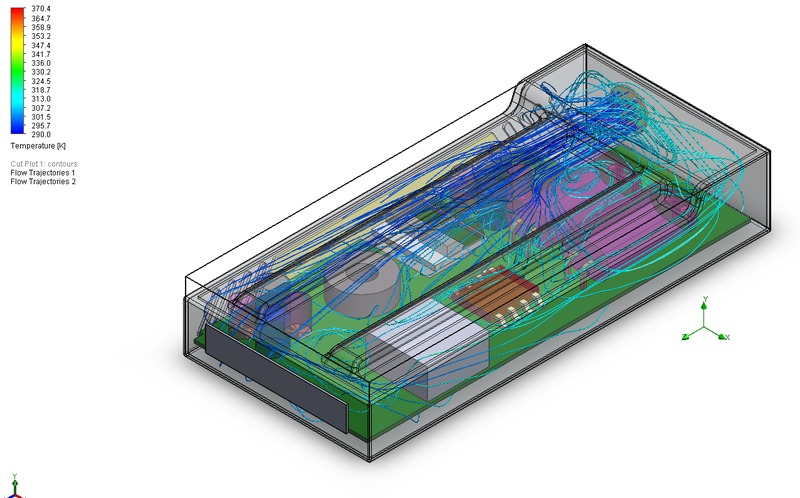 Our final simulation benchmark is a thermal simulation which also requires the Flow Simulation package. Simply put, the results almost perfectly mirror the airflow simulation.