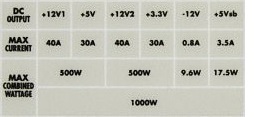 Different components inside a computer run off a variety of voltages: most commonly 12V, 5V, and 3.3V. A power supply has individual ratings for each of those levels – as seen in the image to the left. Because of that, the total wattage a power supply can output is limited in part by those separate maximums. They can also be an issue on their own, in rare situations, if a system has an abundance of parts which all need a single voltage.
