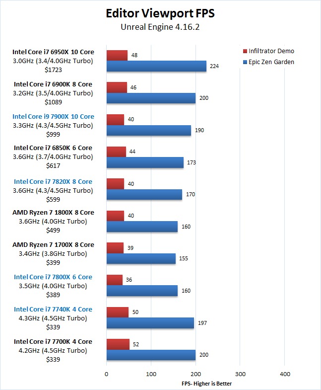 Unreal Engine Editor Skylake-X 7900X 7820X 7800X Kaby Lake-X 7740X Ryzen 7 Editor Viewport FPS Benchmark