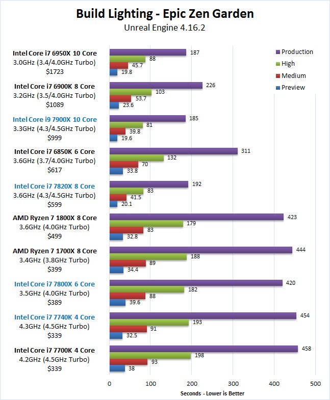 Unreal Engine Editor Skylake-X 7900X 7820X 7800X Kaby Lake-X 7740X Ryzen 7 Build Lighting 1 Benchmark