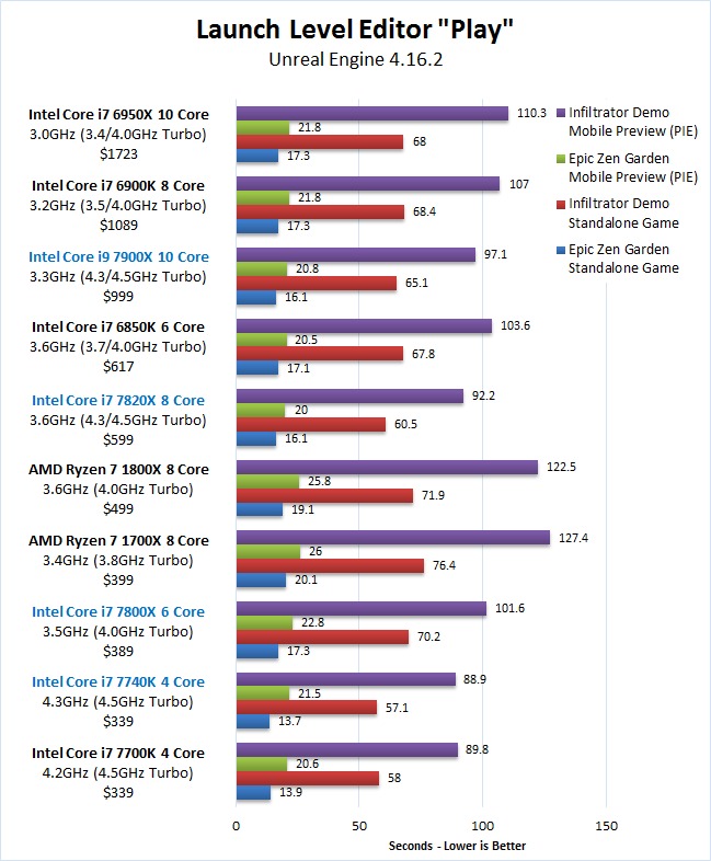 Unreal Engine Editor Skylake-X 7900X 7820X 7800X Kaby Lake-X 7740X Ryzen 7 Level Editor Play Benchmark