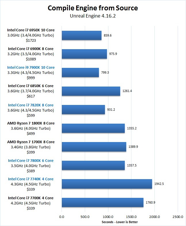 Unreal Engine Editor Skylake-X 7900X 7820X 7800X Kaby Lake-X 7740X Ryzen 7 Compile Engine from Source Benchmark