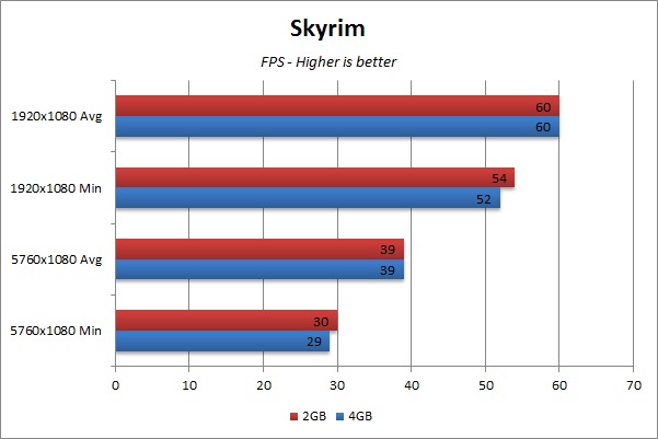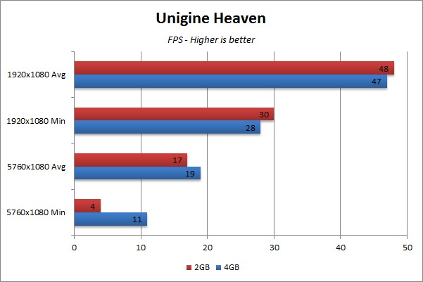 So, what can we glean from all of that? For one thing, with any single monitor the 2GB video card is plenty – even on the most demanding games and benchmarks out today. When you scale up to three high-res screens the games we tested were all still fine on 2GB, though maxing out some games’ settings at that resolution really needs more than a single GPU to keep smooth frame rates. With the right combination of high resolution and high detail, though, there is the potential for 2GB to be insufficient. For future games, or perhaps current games that were not tested in this article, you might be better off with a 4GB card if – and only if – you plan to run across a multi-screen configuration.