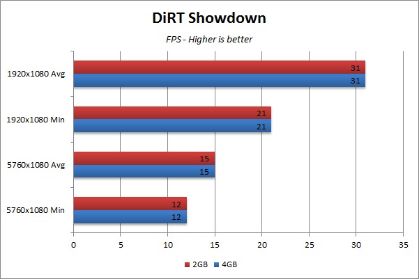 - DiRT Showdown – The benchmark tool built into the game was run, with all settings at absolute maximum (including AA / AF).