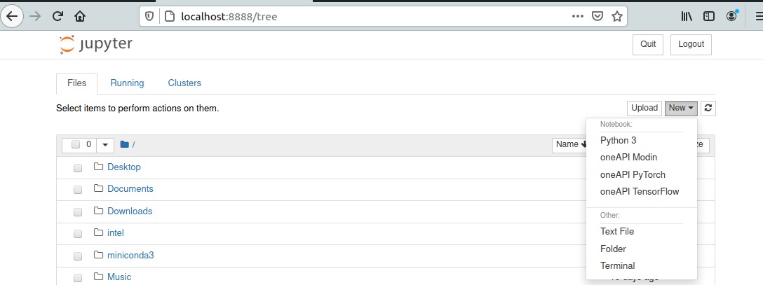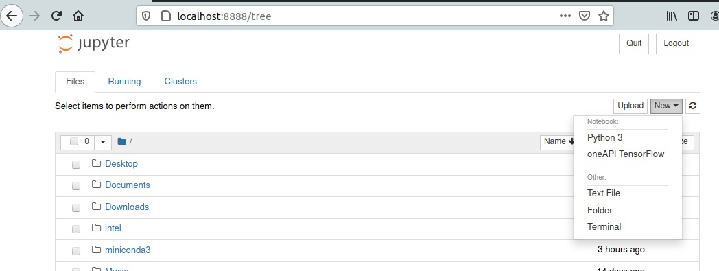 You can now start Jupyter and open a new notebook using oneAPI TensorFlow env,
