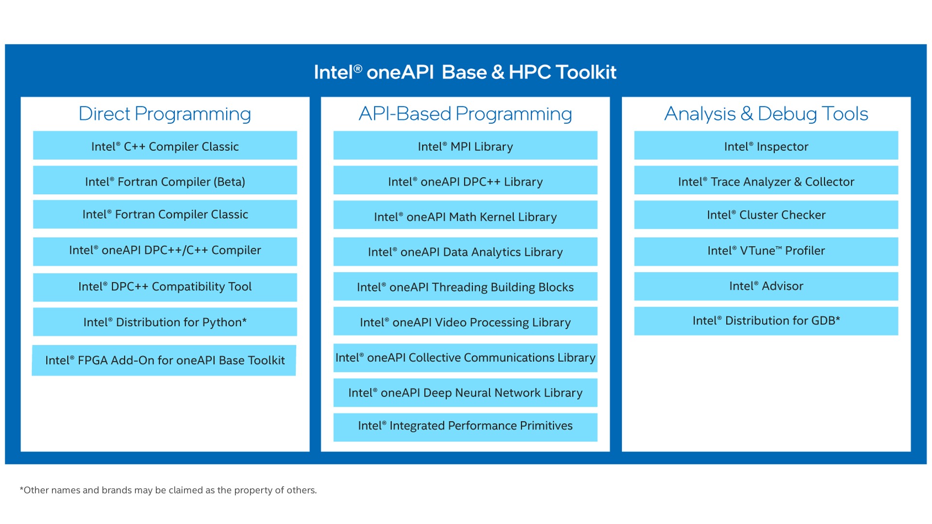 Intel has had great developer tools for many many years. Their compilers and libraries for their architecture are excellent and highly optimized. Their profiling and analysis program's are very good. However, they have been mostly "locked away" with the commercial product bundles with "Intel Parallel Studio". Now with oneAPI we have all of these wonderful compilers and tools available free of charge! What was formerly "Intel Parallel Studio XE" is now Priority Support for Intel® oneAPI Base & HPC Toolkit. There is a lot more to oneAPI than this, and it is all freely available now.
