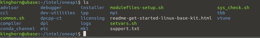One last thing before you can use the tools available in the toolkit is to initialize the needed application and library paths. The default user install in in $HOME/intel/oneAPI,