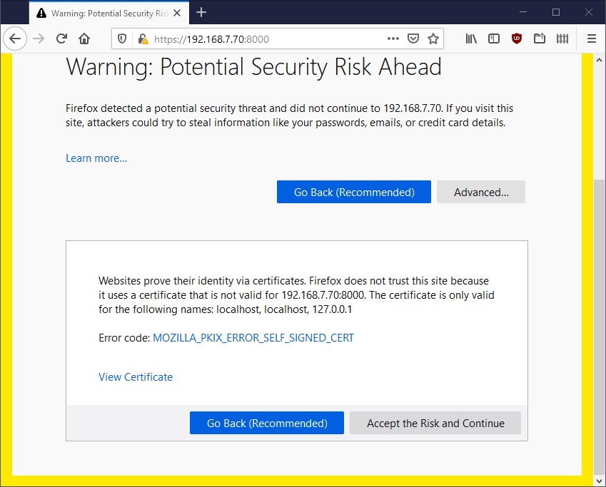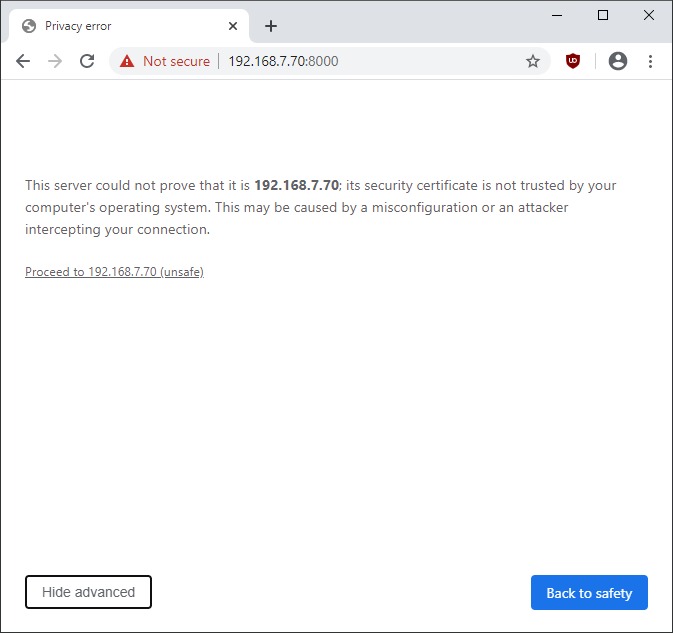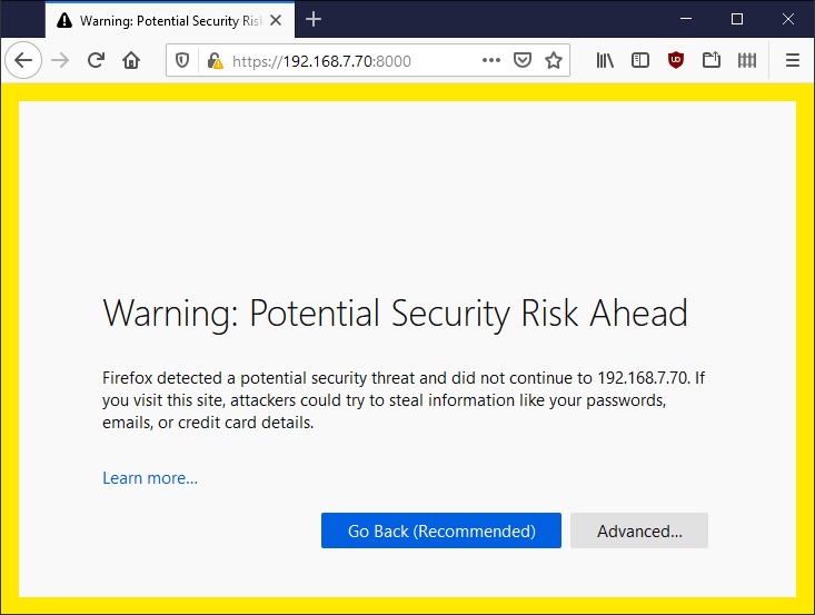 Web Browser software providers set their own requirements for certificates, CA/Browser Forums. Certificates that are not signed by a public CA (certificate authority) are flagged with warnings even when they are served on non-public networks (including localhost). This is an annoyance and requires you to click on something like "Advanced", "Accept the risk", etc.. However, after you have accepted the certificate into your browsers "trust store" you should not have to take any special action in the future.