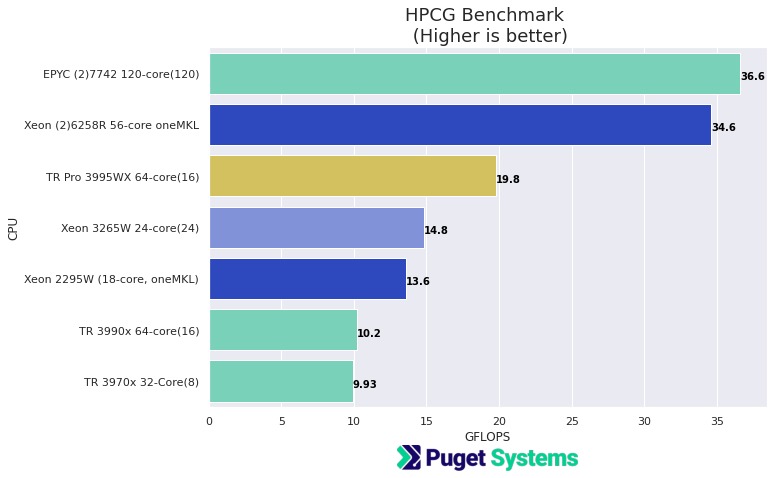 - HPCG High Performance Conjugate Gradient is a more recent ranking benchmark used together with HPL on the Top500 list. HPCG is a good representation of workloads that are memory-bound.