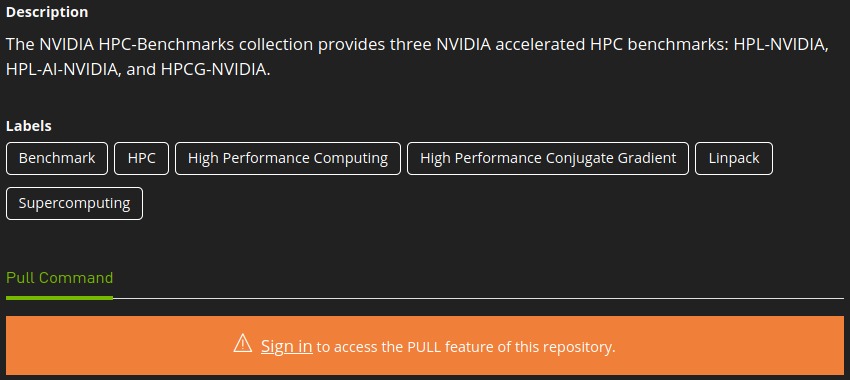 Setting up and running and optimizing these benchmarks is not a simple task. I would not have considered doing this "from scratch". Fortunately NVIDIA has the container setup they use for benchmarking large GPU cluster deployments available on NGC (NVIDIA GPU Cloud). The container used in this post is NVIDIA HPC-Benchmarks 21.4