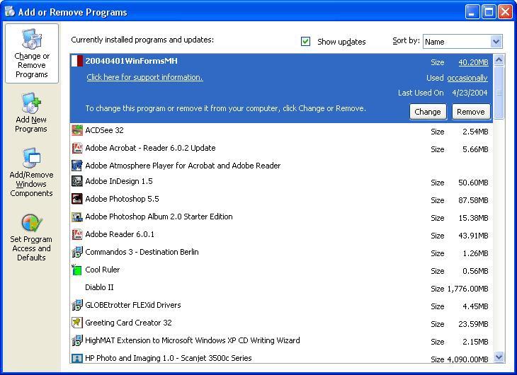 Adding software is usually done with the installation disk or executable, while adding Windows components can be done within the “Add and Remove Programs” utility. In order to change or remove a program in Windows XP, you must either use the “uninstall” utility bundled with the program you wish to remove, or more often, use the “Add and Remove Programs” option in the Windows XP control panel. DO NOT delete folders under your C: drive in an attempt to remove an unwanted program-this can cause serious problems with your operating system, often leading to full operating system reinstalls.