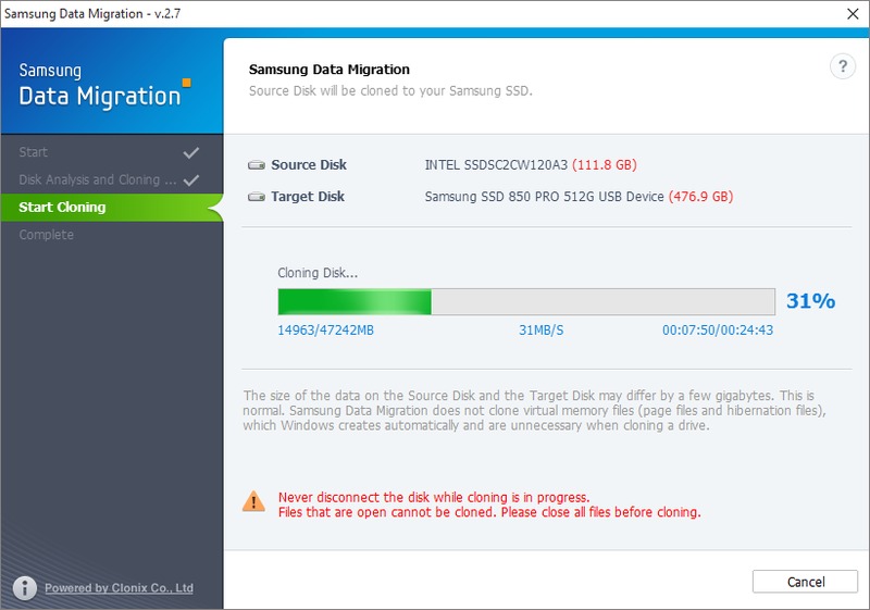 This guide will walk through the process of cloning an existing Windows system to a Samsung brand solid-state drive (SSD). Doing this can be a great upgrade for folks currently using a hard drive, since SSDs are much faster, as well as those who have a small SSD already and need to move up to a larger drive. I've run into that myself a few times over the years, and have moved my main system from a 80GB drive to 120GB, then 240GB, and most recently to a Samsung 840 EVO 500GB drive. If you are using an Intel drive instead, we have a guide to their migration tool as well.