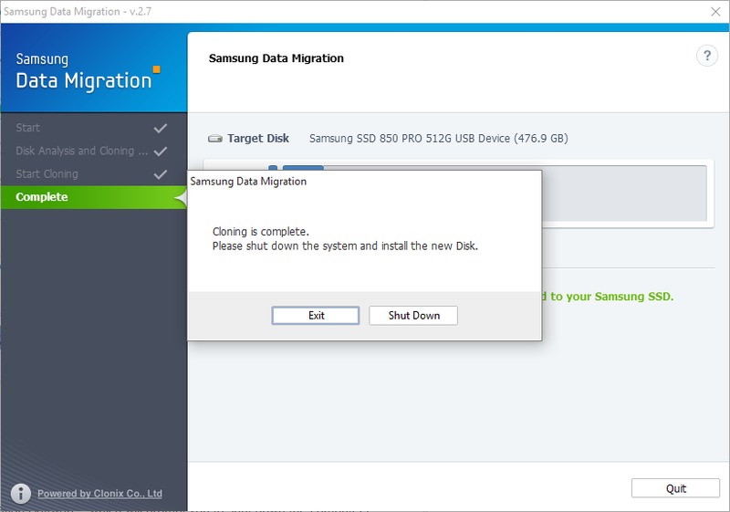 12) At this point you can 'Quit' out of the Samsung Data Migration Software – which will prompt you to shut down the computer: