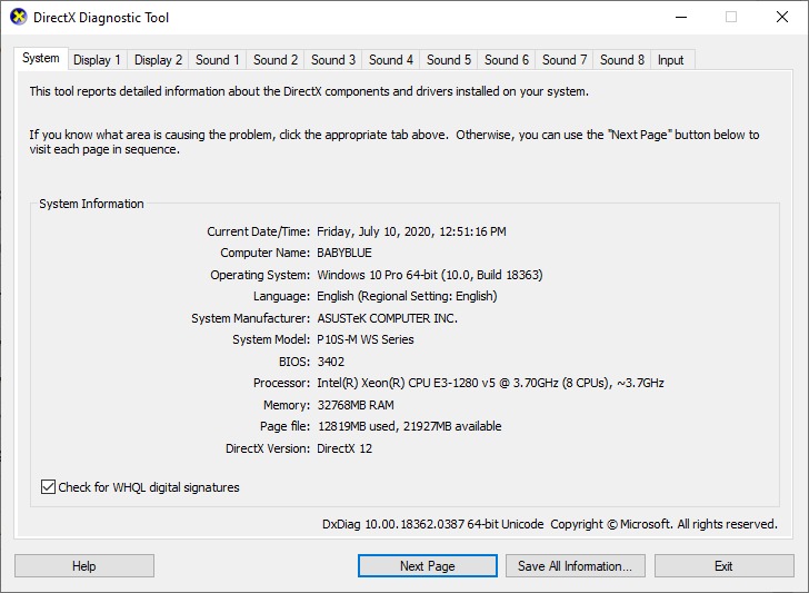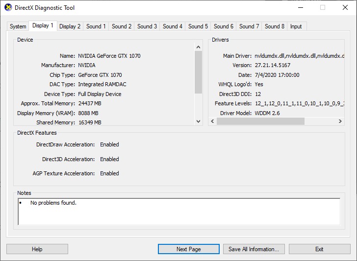 DxDiag – DirectX diagnostics is tool made by Microsoft and included with the DirectX software that automatically installs on most systems. The tool provides detailed information about video and sound devices. The tool can be useful when troubleshooting or for obtaining general system information.