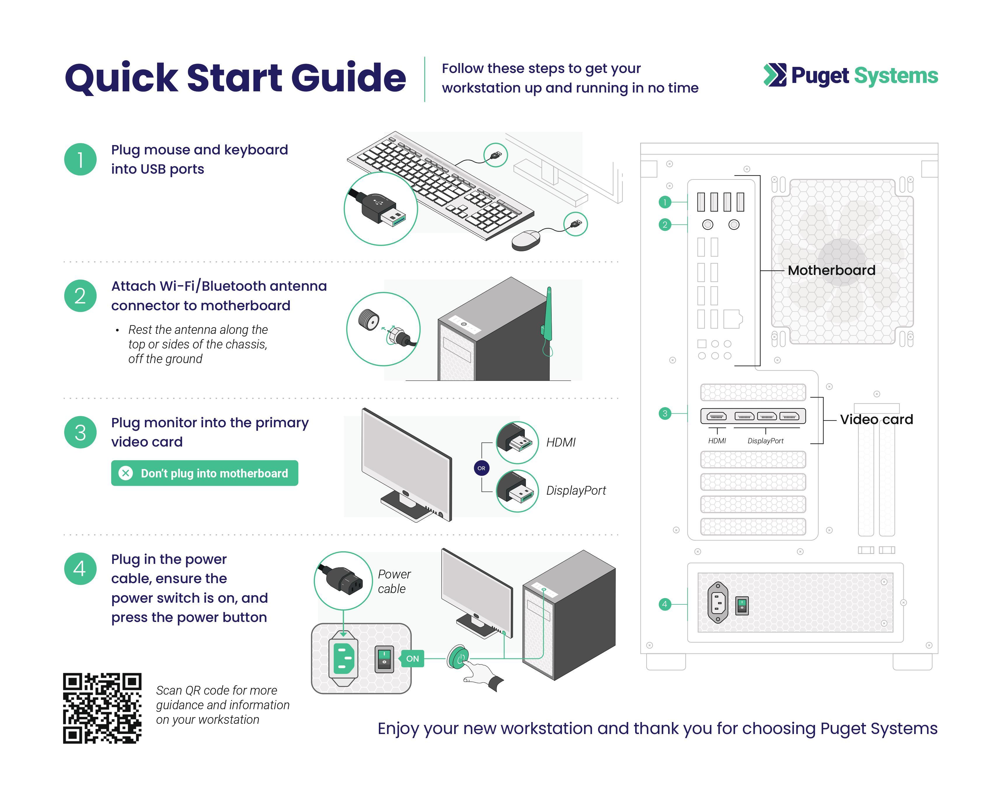 So your new Puget System arrived and needless to say you're more than a little excited to get it unboxed and operational. Let's dive in shall we? We have compiled a list of some frequent issues encountered during the setup process and would love to help alleviate some woes during this process. These might seem simple and obvious to some but these computers are highly advanced workstations with components you might be unfamiliar with.