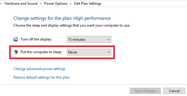 If your current power plan is set to Balanced, several devices are allowed to go into a low power states which can sometimes cause issues. If you disable Sleep and still have issues on Balanced, try changing to High performance. You will use a little more power but devices which might be causing an issue are typically told to just stay on.