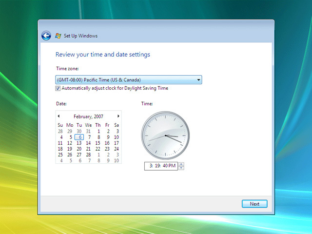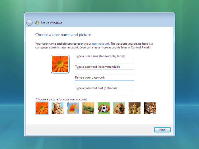 Setup will next guide you through creating user accounts and personalizing your installation of Windows Vista