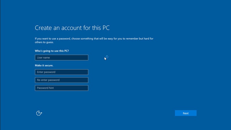 If you unplugged your network connection before you started, it will look like the image above. Otherwise, it will ask you to create or login to a Windows live account. Choose whatever account information you want and click "Next"!
