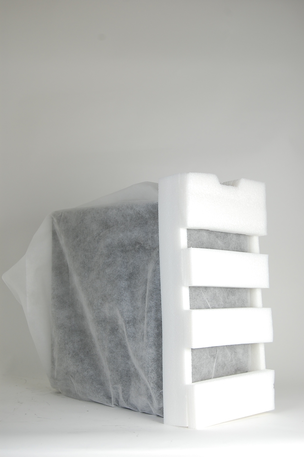 Put remaining foam packaging on the opposite side of the computer (the bottom of the computer). Leave the front of the computer facing down.