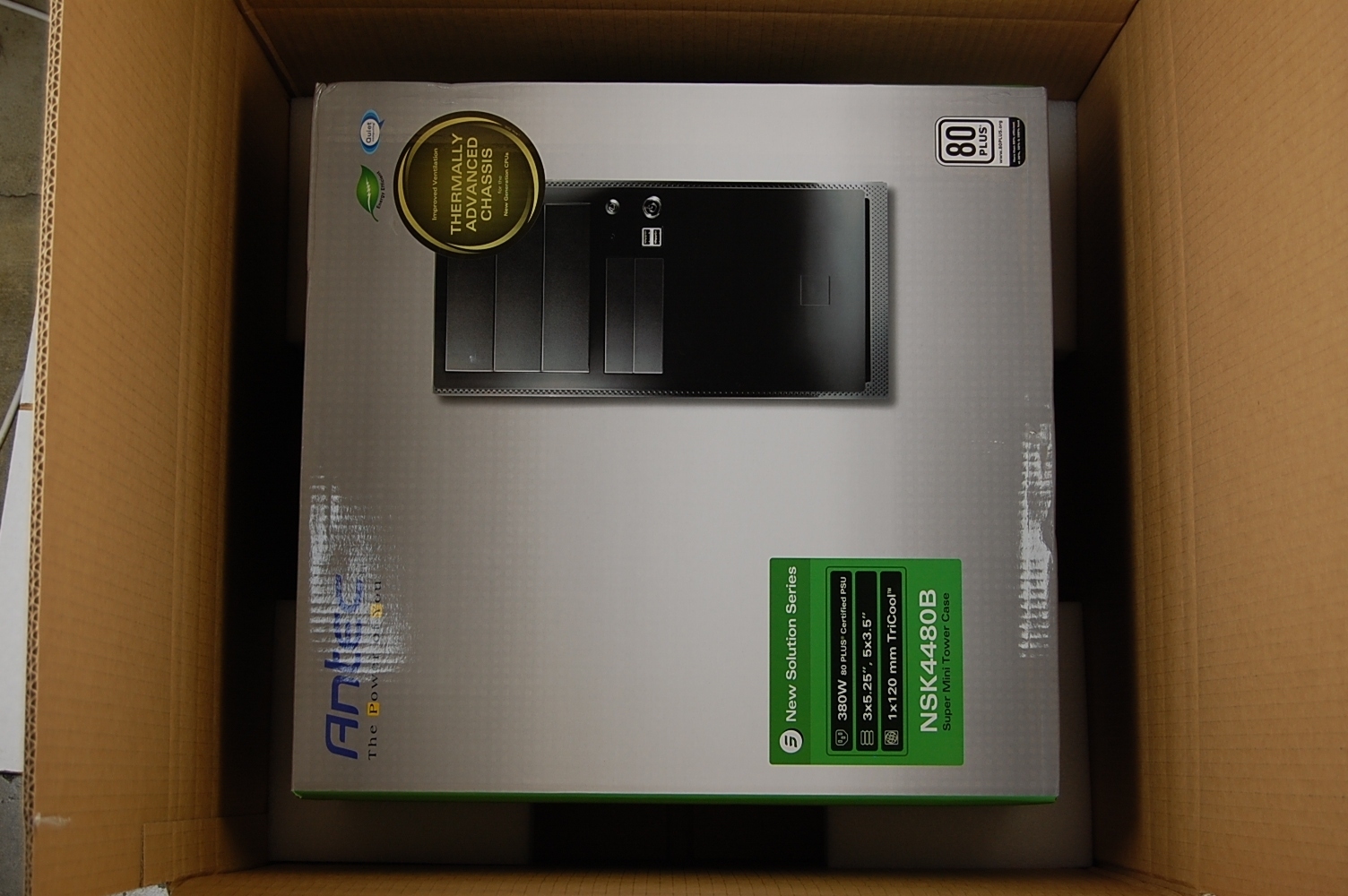 Place the inner box on the computer in such a way as the motherboard side of the computer will be on the back side of the inner box (the side without the main picture).