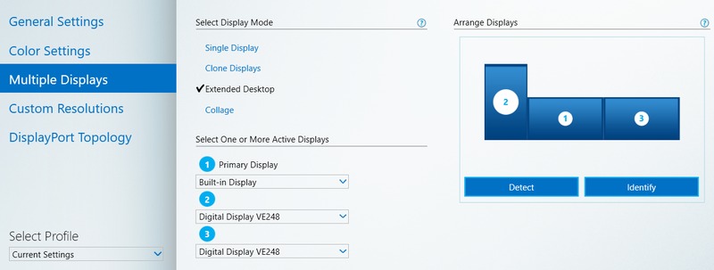 Here are my Intel Graphics Control Panel settings for Multiple Displays:
