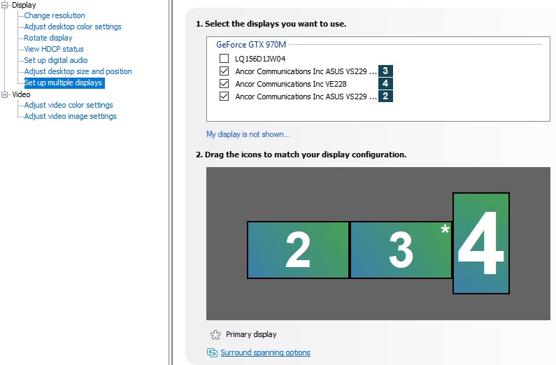 And finally, we get to the Multiple Display section. These are my settings for monitor 2: