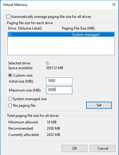 Configure a custom Page File size