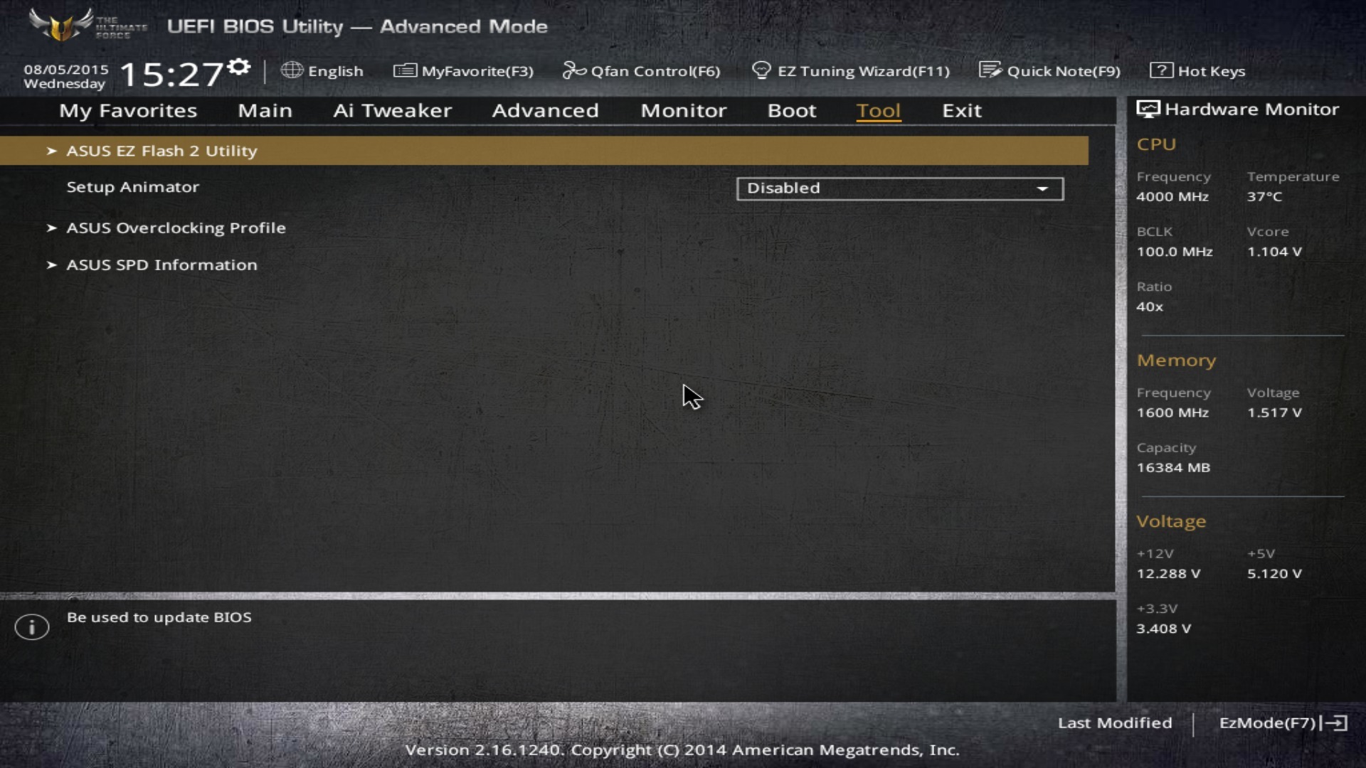Next up, gonna go to the Tool menu. You'll see something similar to the image underneath this. One of the options will be for the Asus EZ Flash Utility. Select it and hit enter!