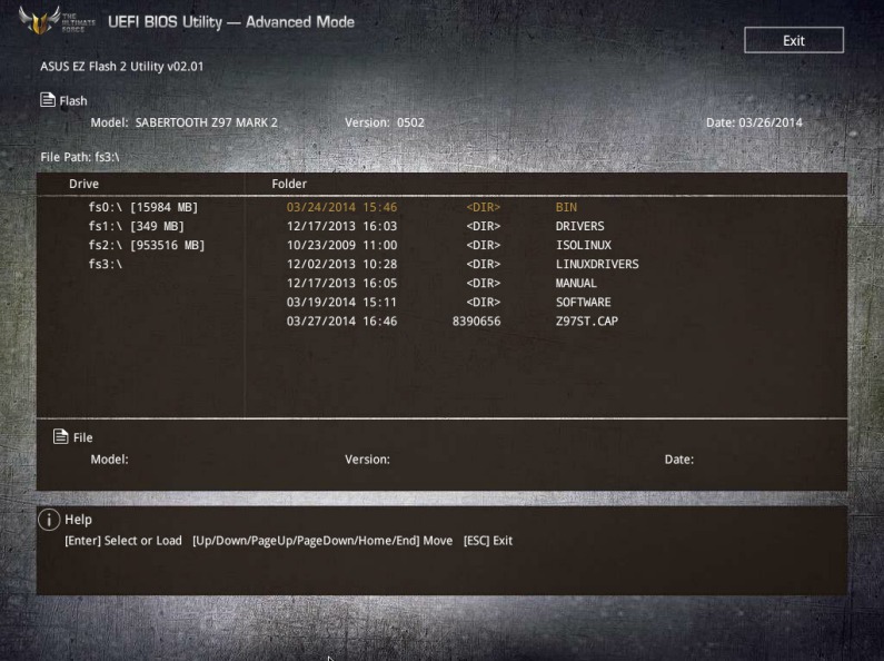 This will list a bunch of drives on the left and files on the right. This part is a bit tricky. You will want to use the arrow keys and tab to select each of the drives until you find the one with the .CAP file. Select that drive, then go down to the .CAP file and press enter on it. It will prompt you for confirmation that you got the right file. Tell it so and then just wait! The update will continue on its own and eventually the system will restart.