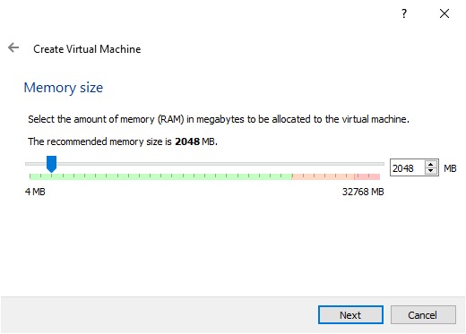 Choose this setting carefully. The memory you give to the VM will not be available to your host OS while the VM is running, so do not specify more than you can spare.