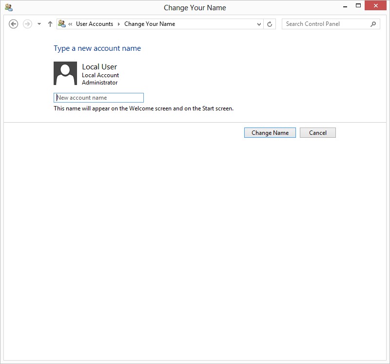 Change Account Name: To change the user account name, click on "Change your account name" and input the desired account name. Note that if you are using a Microsoft account, this option is not available. To change the account name of a Microsoft account, you need to log in to your Microsoft account and change the name online.