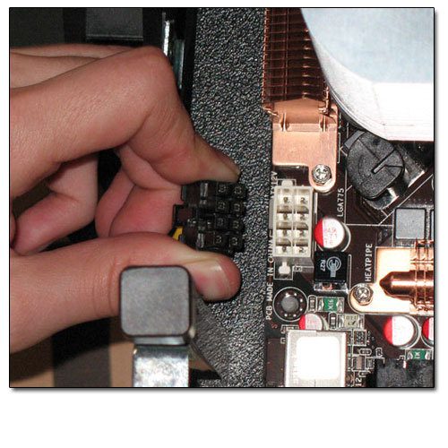 Finally, there’s one more connector found on the upper-left, near the processor. It’s either a 4-pin, or 8-pin connector, and it might be hard to see around the CPU Fan. Check to make sure it’s firmly connected. (8-pin connector pictured)