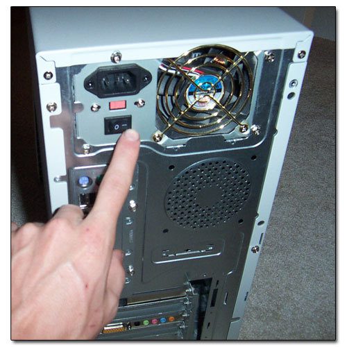 Check to make sure that the switch is in the ‘-‘ position. If the computer is off, try flipping it to ‘O’ and then back to ‘-‘.